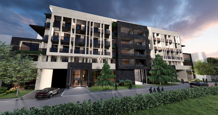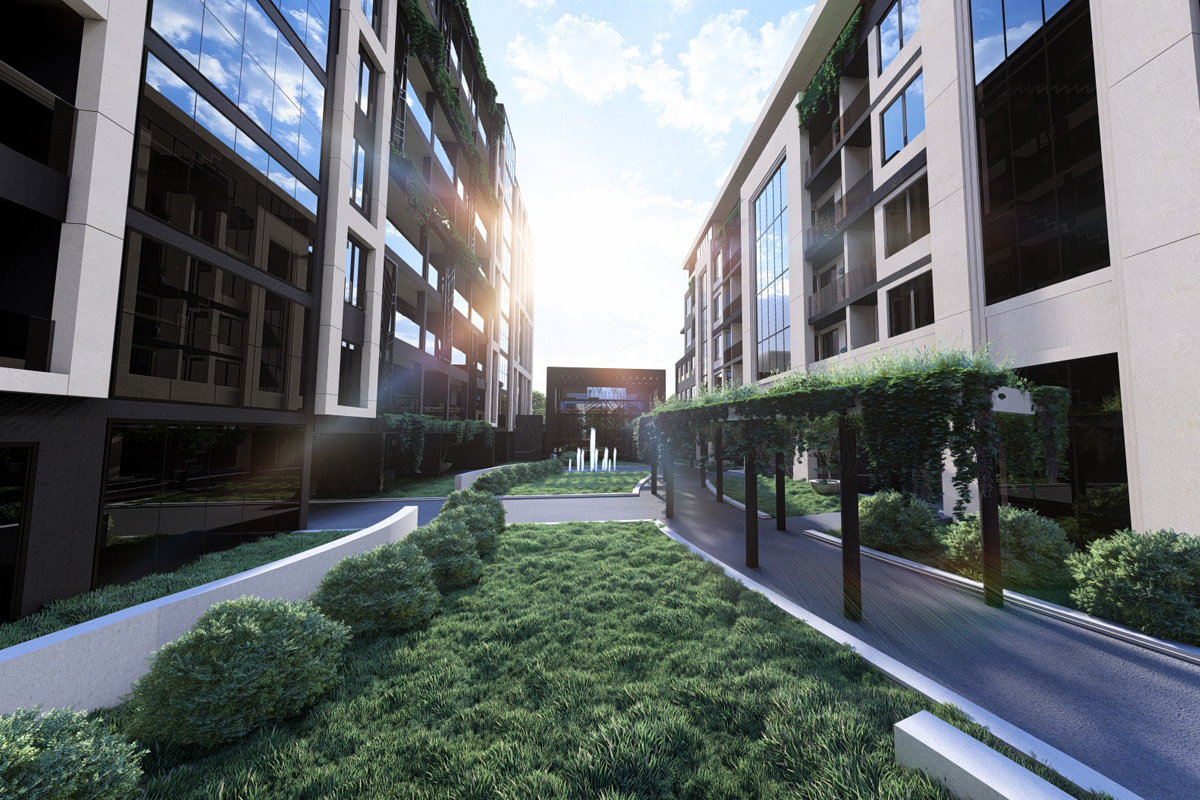 Designed as two interconnected volumes opening toward a shared inner courtyard, the complex creates a dialogue between urban rhythm and residential calm. Natural light, greenery, and clean architectural lines shape a serene core within the city.